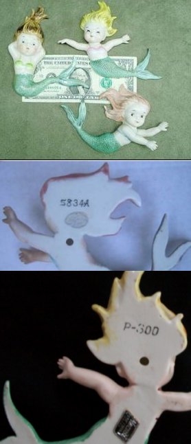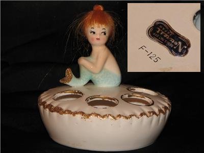 from Japan, you often see mermaids with Japan stamped on the back and no label. That is because they made for Norcrest in Japan, shipped over to the US, and then Norcrest put them in a box with the