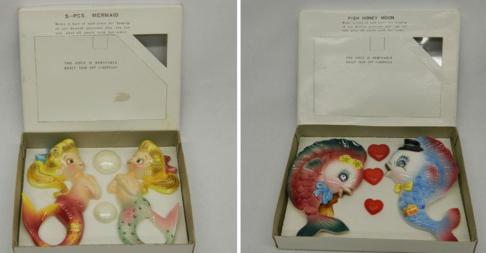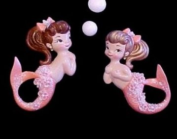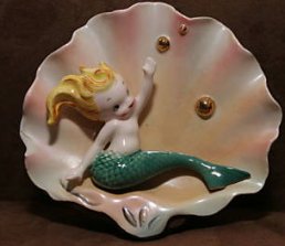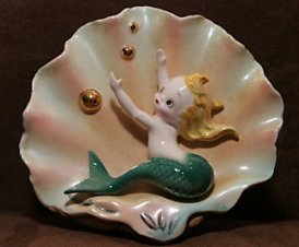 mass produced molds of the two on a shell and the swimming one below. The ones on the shell are actually wall pockets so you can place a plant in them.